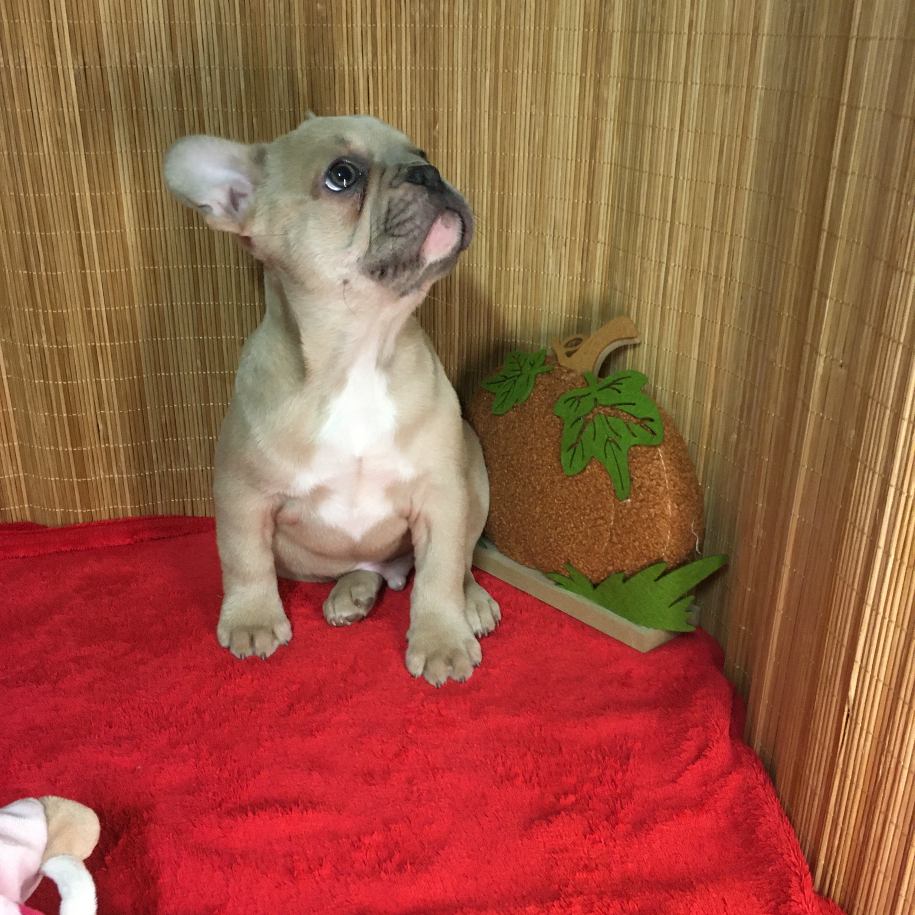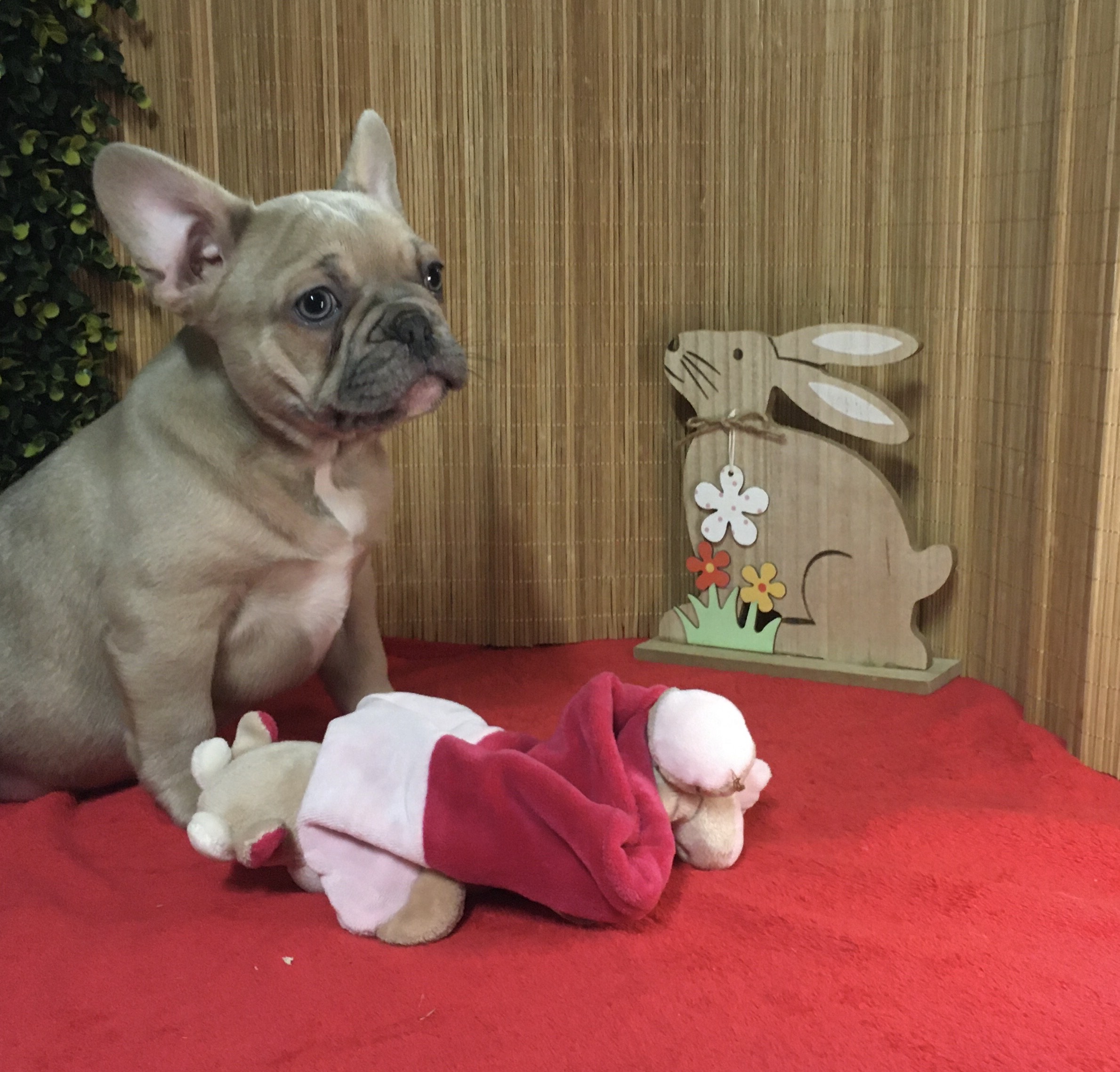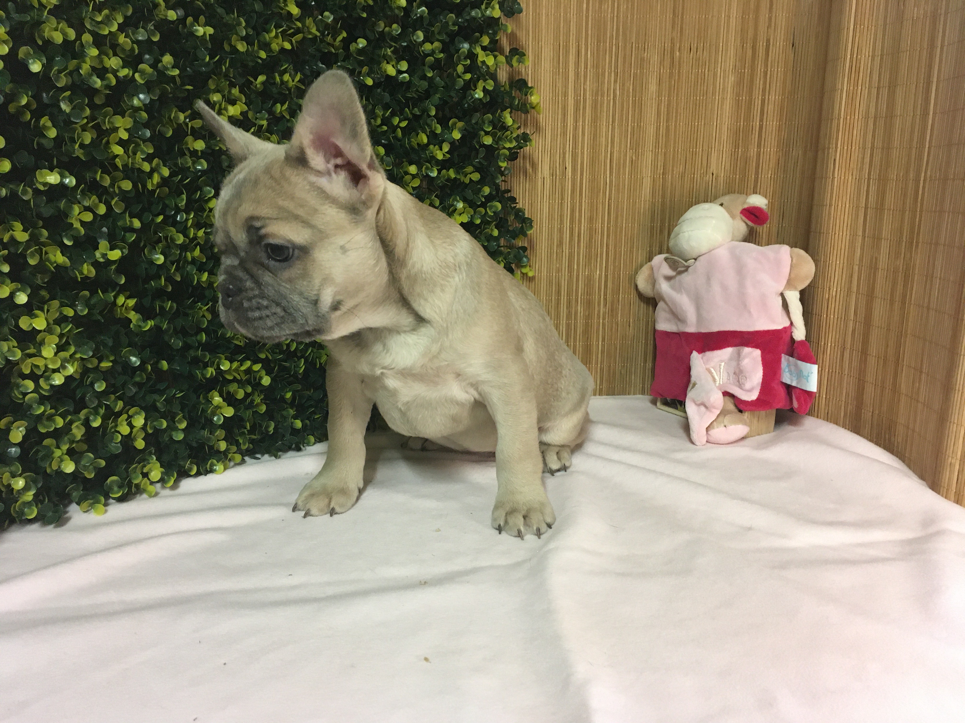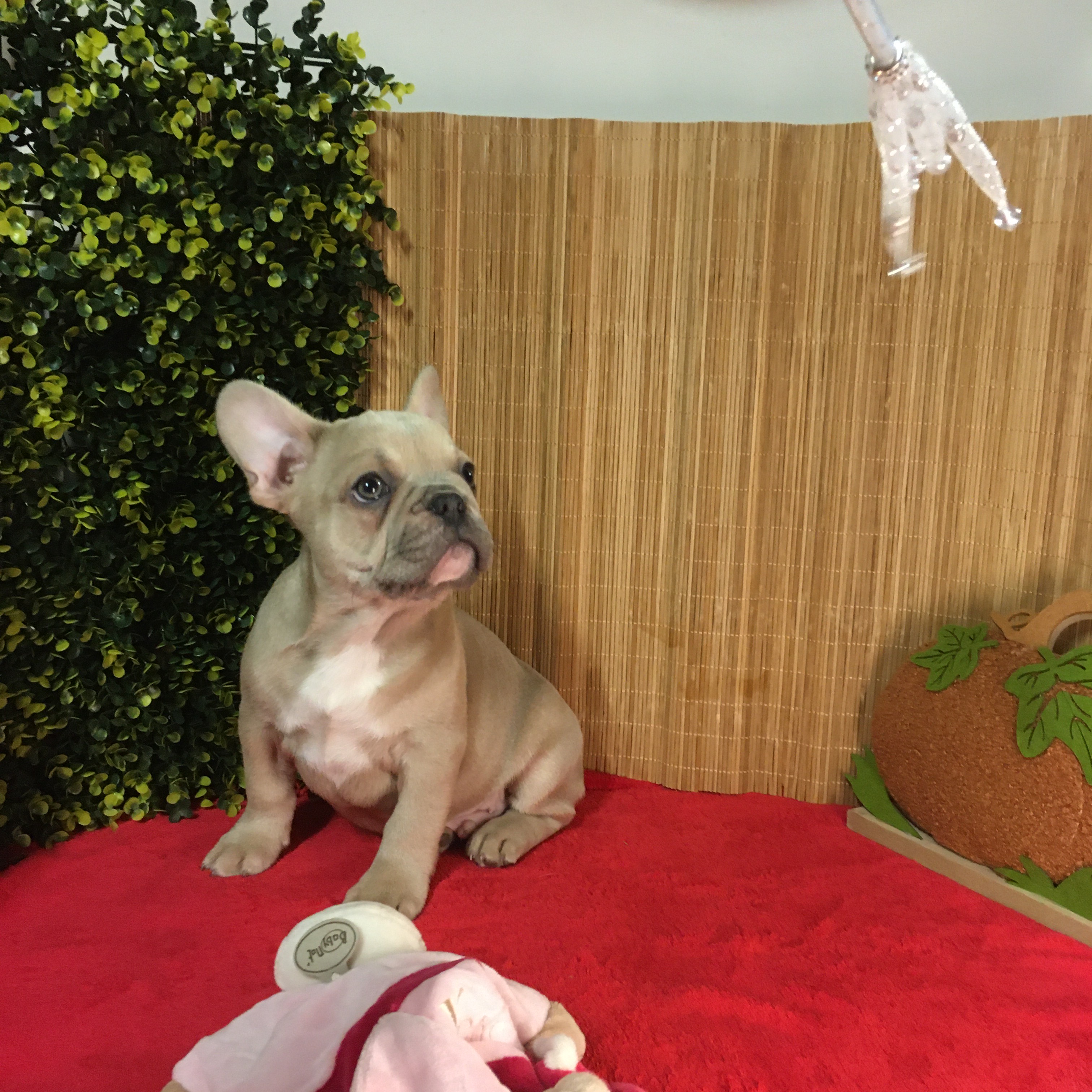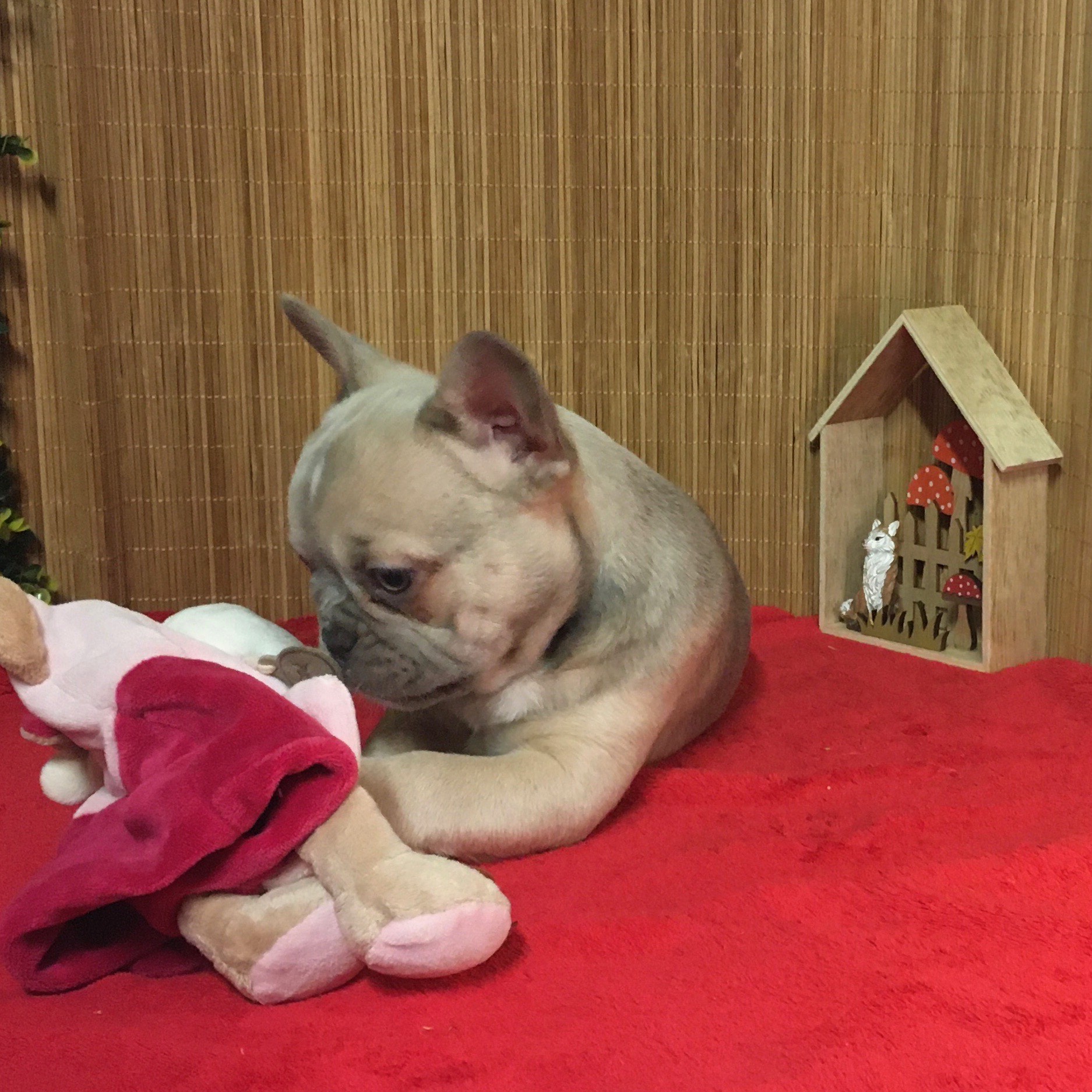 Femelle ALOé Bleu Fawn/Sable en poils courts : De gabarit moyen, elle adore jouer et interagir. Le bouledogue Français typique par excellence.